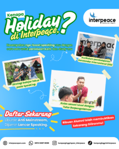 Oleh karena itu, Interpeace Kampung Inggris Pare siap membantumu mewujudkan liburan belajar bahasa Inggris yang produktif dan menyenangkan. Jangan biarkan waktu luangmu berlalu begitu saja. Kunjungi website kami sekarang dan segera daftar program yang akan mengubah liburanmu menjadi investasi berharga!